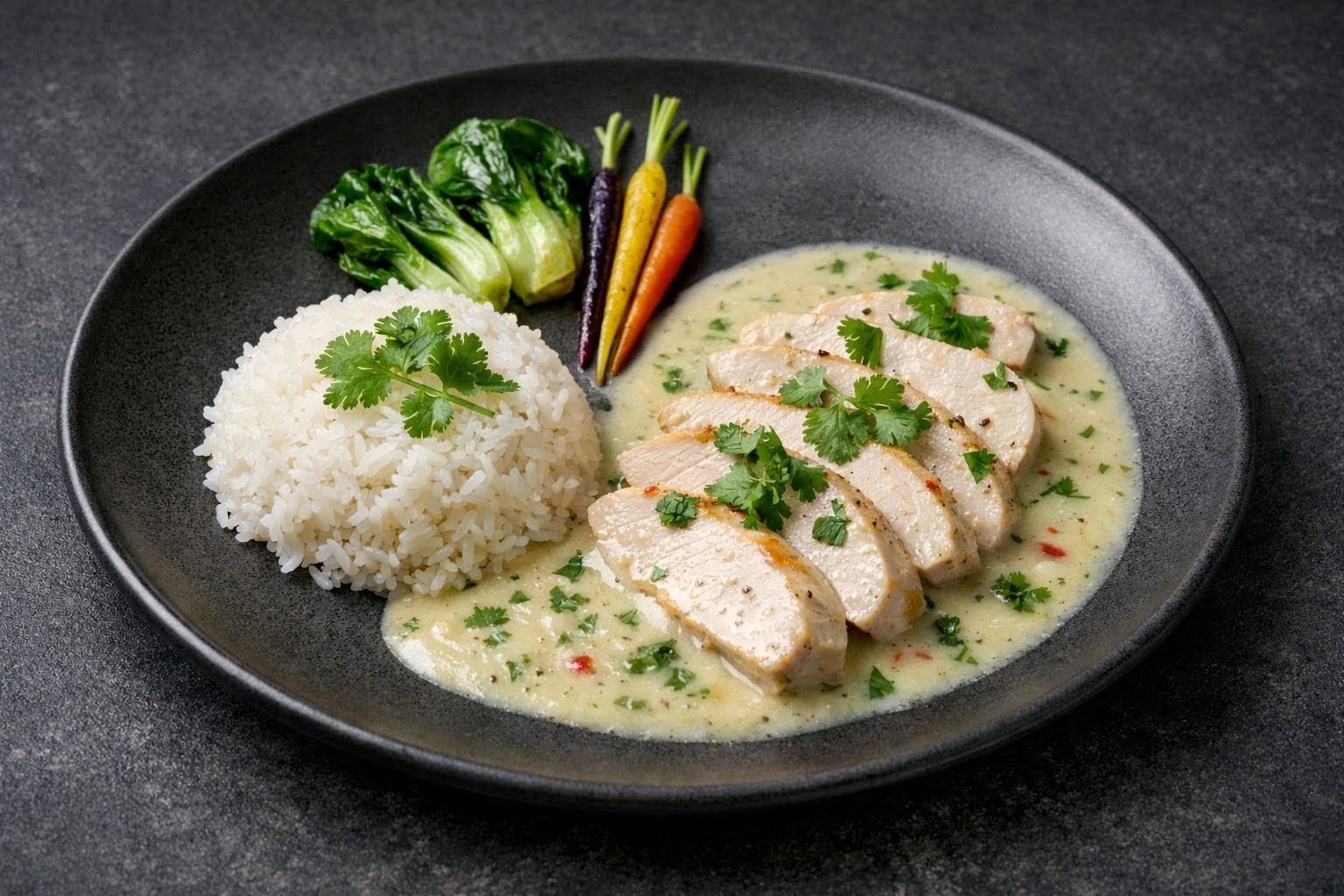 Genießen Sie die Leichtigkeit der asiatischen Küche mit unserem köstlichen Rezept für Chicken in Kokos-Limetten-Sauce mit Reis – eine harmonische Fusion von zarten Hühnerstücken, exotischer Kokosnuss und erfrischender Zitrusnote, die nicht nur gesund, sondern auch spielend einfach zuzubereiten ist. Die cremige Kokosmilch umhüllt das saftige Fleisch, während die Limette eine lebendige Frische hinzufügt, die die exotischen Aromen perfekt ausbalanciert. Jeder Bissen entfaltet ein sanftes Zusammenspiel von Süße, Säure und würziger Wärme, das die Sinne auf eine kleine Reise in ferne Länder schickt.