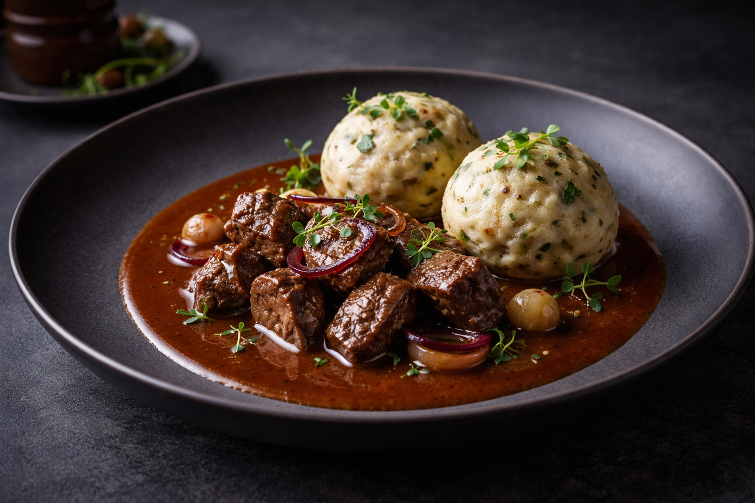 Würzig saftiges Rindergulasch mit Semmelknödel
