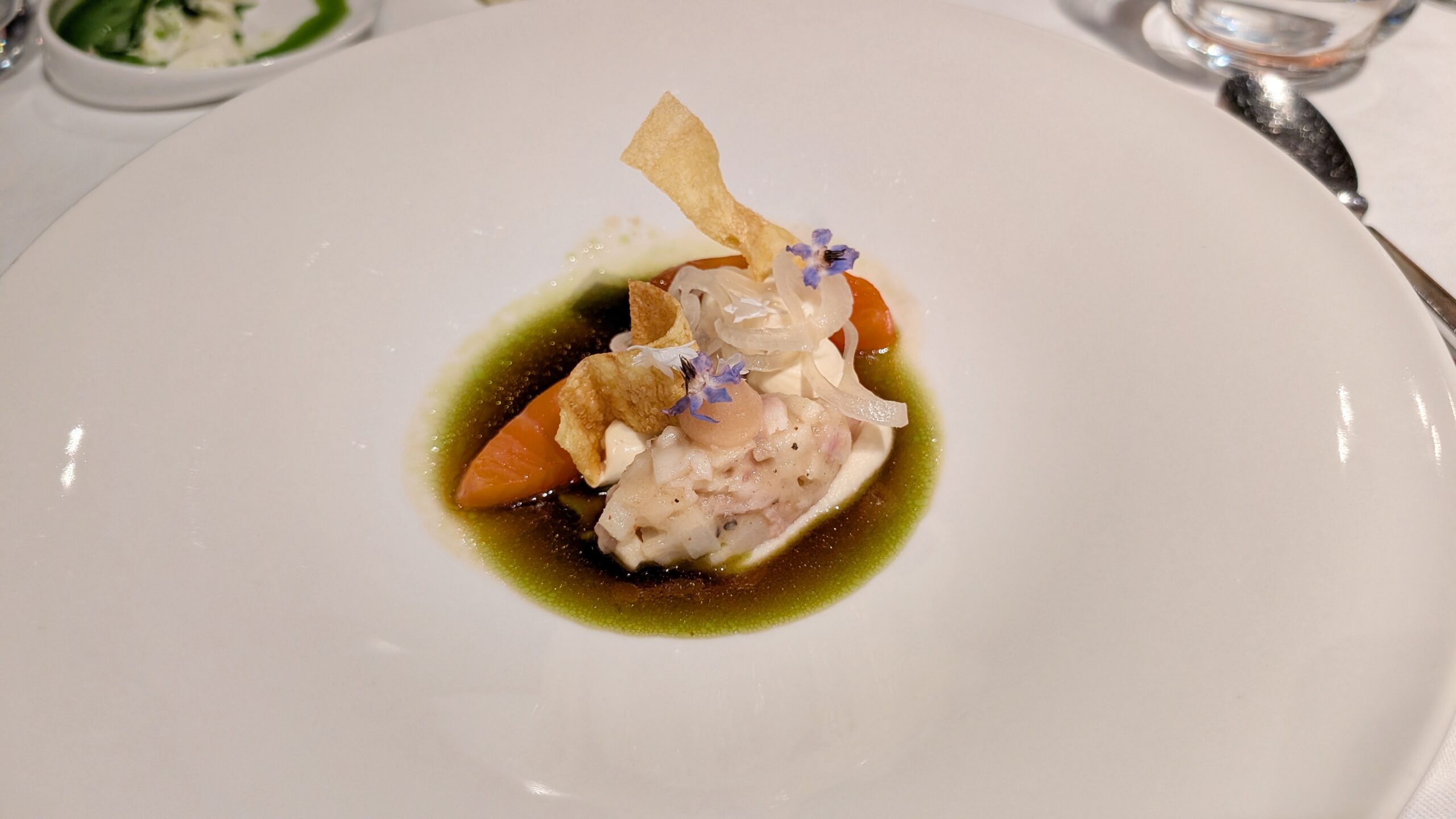 Fjord Forelle / Röstzwiebel / Petersilienwurzel / Apfel – Zarte Fjordforelle trifft auf intensiven Röstzwiebel-Jus, begleitet von samtiger Petersilienwurzel und leicht geschmortem Apfel – ein ausgewogenes, raffiniertes Zusammenspiel.